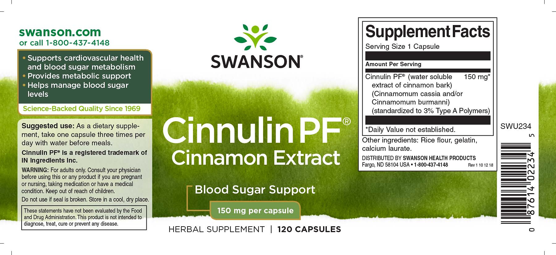 | Cinnulin PF® (ve vodě rozpustný extrakt ze skořicové kůry) (Cinnamomum cassia a/nebo Cinnamomum burmanni) (standardizovaný na 3 % polymerů typu A) | 150 mg |