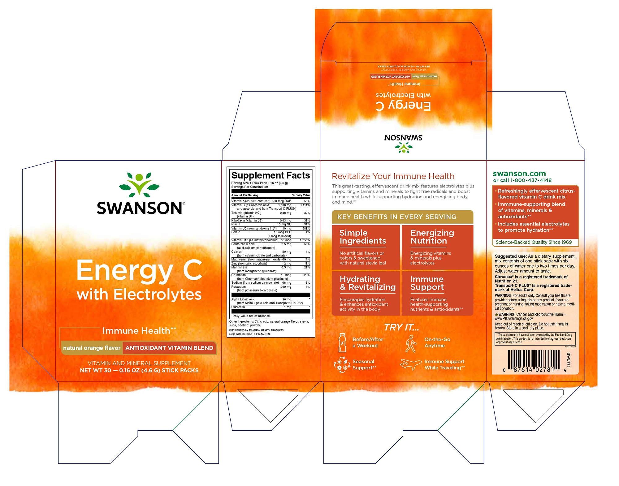 Osvěžující šumivá nápojová směs s citrusovou příchutí, obsahující vitamín C a elektrolyty.